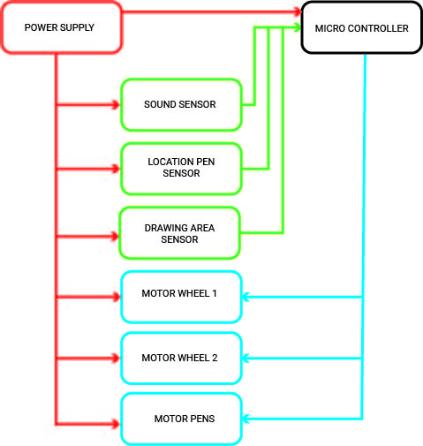 The objective is to develop a drawing robot for children. The robot has to be able to recognize simple voice commands and respond accordingly in a timely manner. The robot should be user-friendly and childproof. It has to be easy and clear how one must use the robot. The drawing area should be detected automatically, ensuring the robot does not draw on the floor or table. The user should be able to change the drawing color with ease.