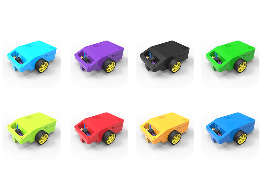 A camera which is attached to the robot can also be used to recognise colours that are placed in front of it. The different colours of paper, cardboard etc. can be used to signal a different command which will be carried out by the robot.