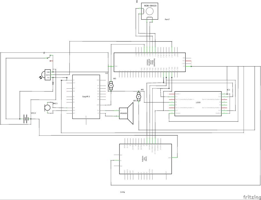 The next step was combining voice commands with enabling particular motors, the team encountered a problem at the start when the current from the USB was too low but the team attached an external power supply which allowed the system to function.