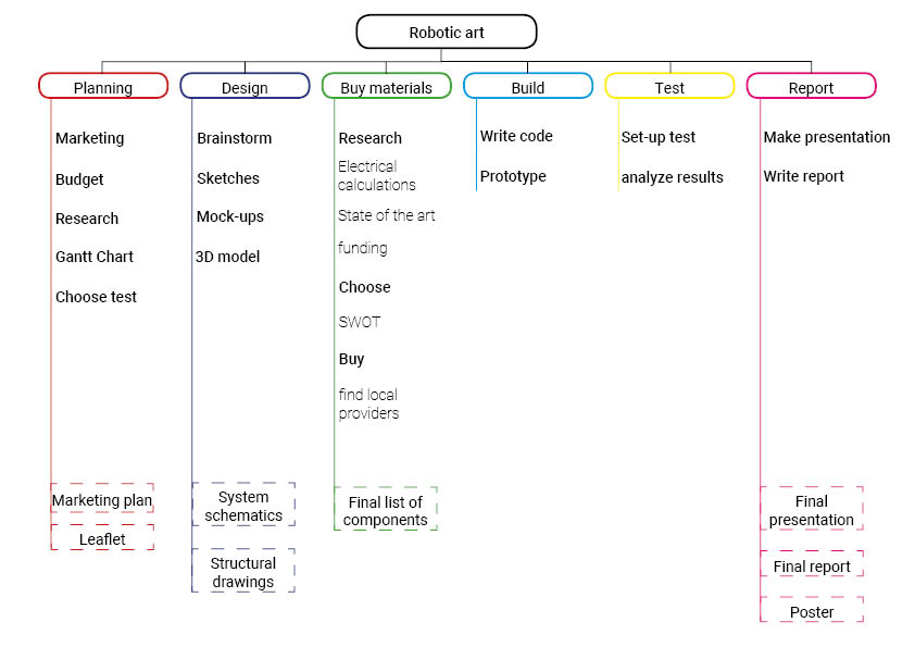 The development of this robot is an opportunity to learn more about robotics and programming. The team already has some limited experience with Arduino, but has never touched upon a project of this size. As future engineers this project is very interesting as robotics is an up and coming market. The specific skills acquired in our different studies comply with this project. The development of a drawing robot while regarding marketing, project management, sustainability and ethics still remains a challenge. It is never easy to work in a team. This team consists of people with different cultural and study backgrounds, making it even harder. This is however also an advantage. The team has the chance to learn a lot from each other and by sharing their knowledge work towards a common goal: bringing this project to a good end.